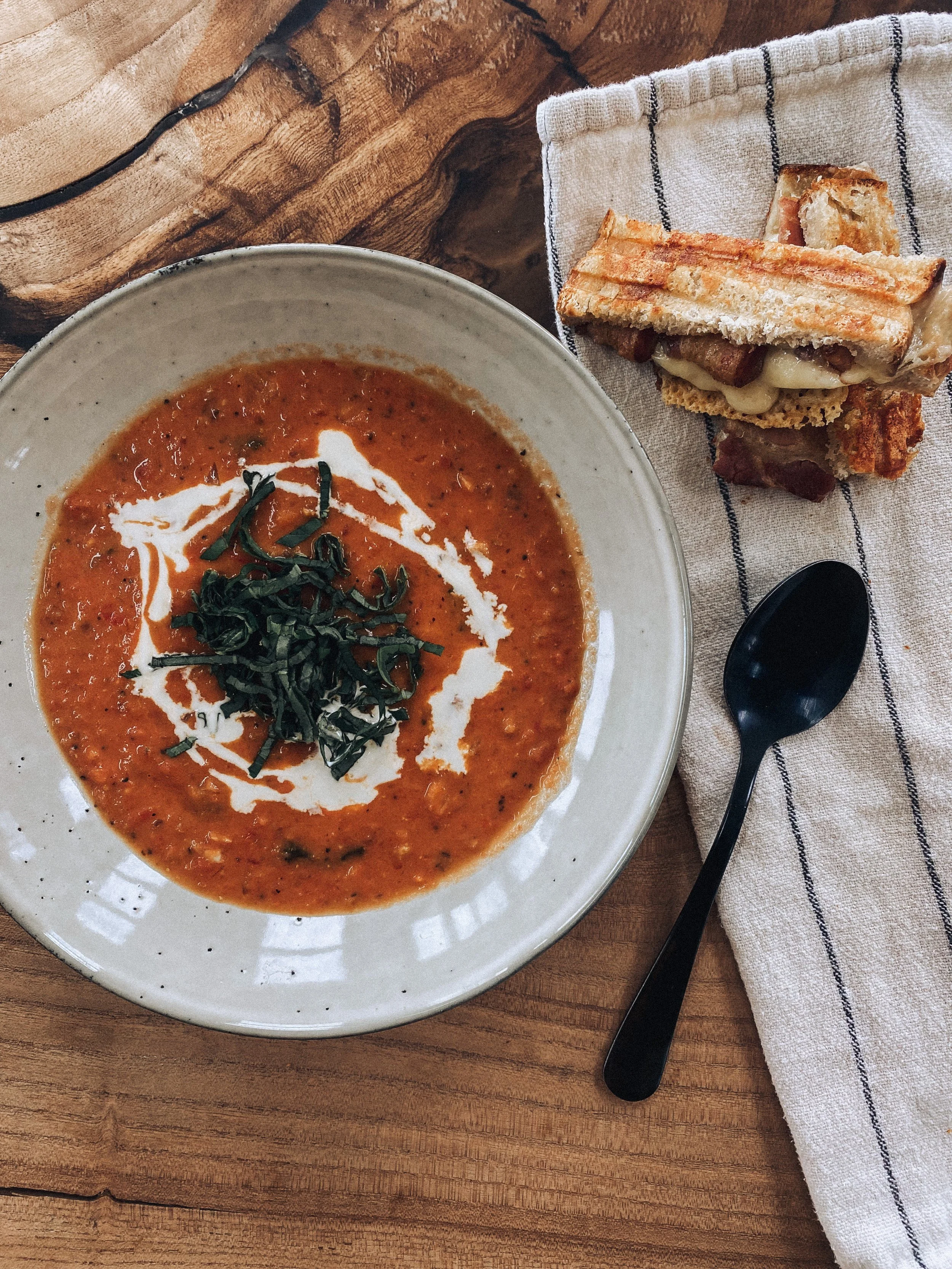 This ranks easily as one of my top three favorite soups. It is so full of flavor and perfect to dip a grilled cheese into.